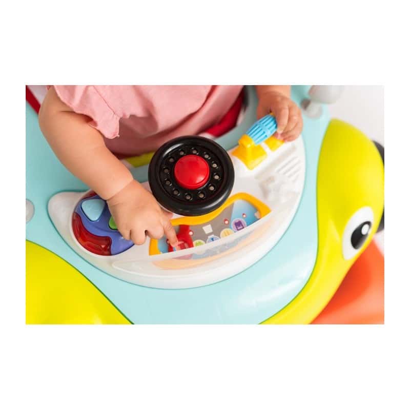 Andador dinámico donde el bebé aprenderá a dar sus primeros pasos de la forma más segura y práctica. Tiene su bandeja didáctica y un asiento acolchado extraíble para su limpieza. Equipado con un sistema de bloqueo STOPPER, que bloquea el desplazamiento ante un escalón y sus tres puntos de regulación de altura, le acompañará en este momento tan importante para el peque.