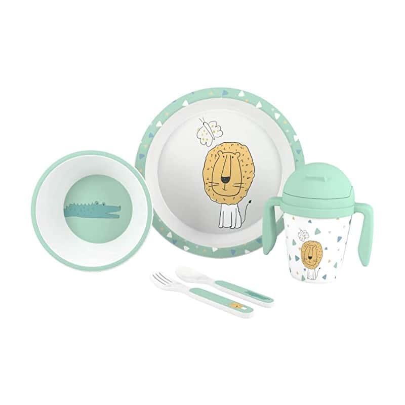 Vajilla Bebé 5 Piezas Apta para microondas + regalo de un babero (Verde savana)