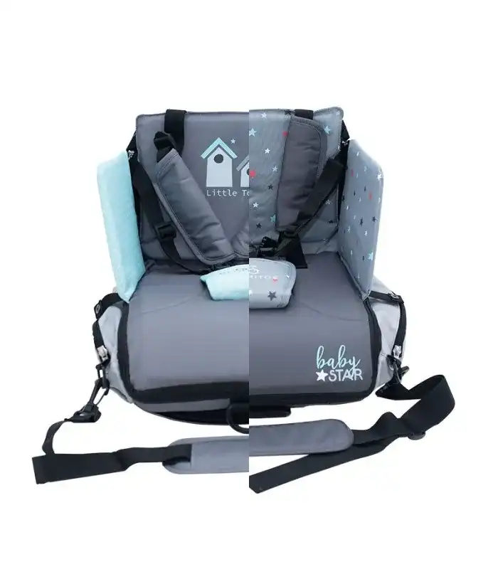 El asiento elevador es la solución para dar de comer al bebé en cualquier lugar. Se monta y desmonta fácilmente en cuestión de segundos sin necesidad de usar herramientas y se ajusta a la mayoría de sillas convencionales convirtiéndolas rápidamente en una cómoda trona para el bebé. Lo más característico son sus prácticos bolsillos que ofrecen un espacio extra de almacenamiento para guardar los utensilios de comida, servilletas, pañales o lo que el bebé necesite a la hora de comer. Su diseño compacto permite llevarla durante los viajes familiares y las correas ajustables aseguran una fijación segura.
