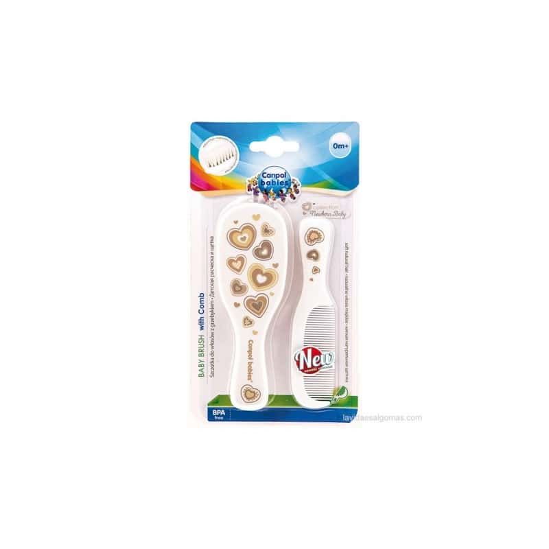 Este set contiene un peine con púas redondeadas y un cepillo fabricado con pelo suave y natural.