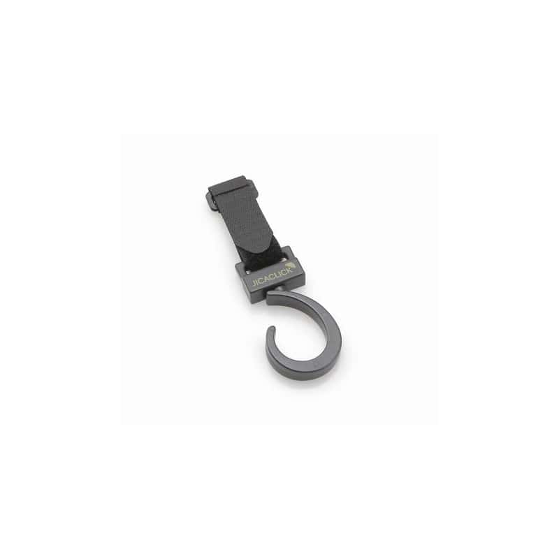 Pareja de prácticos ganchos porta bolsos. Válidos para que el bolso se adapte al carro o silla de paseo y también para llevar las bolsas de la compra, ya que el cestillo del carrito resulta generalmente insuficiente.