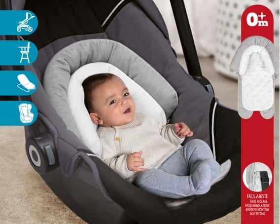 Este set de cojines evolutivos es ideal para usar en carricoche y silleta, en la silla reglamentaria para automóvil y en la trona ya que incluye ranuras para hacer pasar los tirantes.