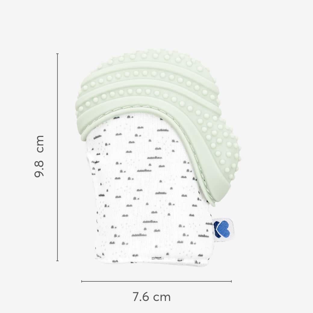 - Silicona blanda de grado alimenticio: manopla con parte superior hecha de silicona blanda de grado alimenticio para aliviar el dolor de dientes del bebé y garantizar la seguridad. Evita que el bebé se rasque con un ajuste seguro y cómodo.