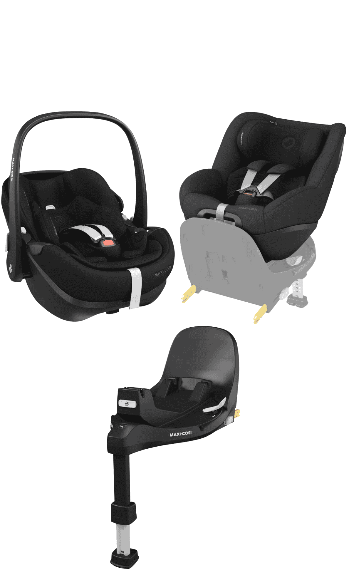 Pack de Pearl 360 pro , FamilyFix 360 pro y Pebble 360 pro en Negro de Maxi-Cosi