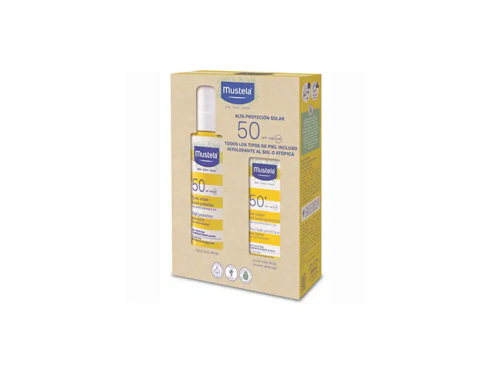 Descubre el Pack con el Spray solar spf 50 200ml y la lecha solar de cara 40ml spf50+. Cuidados fotoprotectores para toda la familia, especialmente concebidos para la piel delicada de los bebés y niños, desde el nacimiento*. Para todos los tipos de piel incluso pieles atópicas y intolerantes al sol.